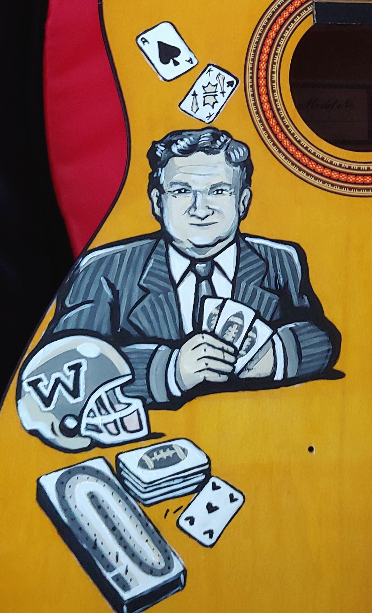 Very awesome commission from a local client who found me at Art on the Street. I painted a portrait of their recently passed friend(rip), along with some cribbage and football items which were their favorites. Honored to get to work with people on things that mean so much to them.