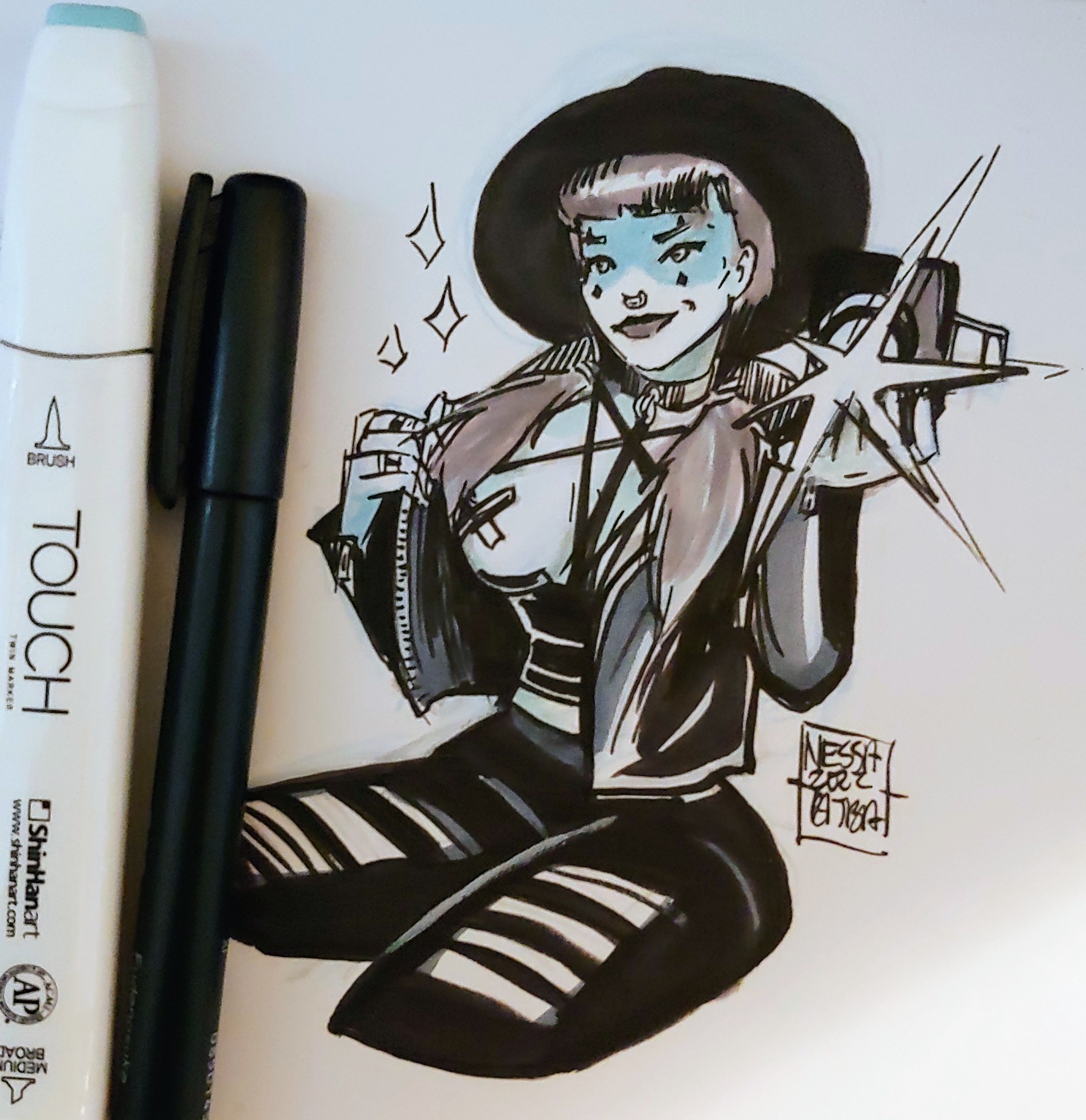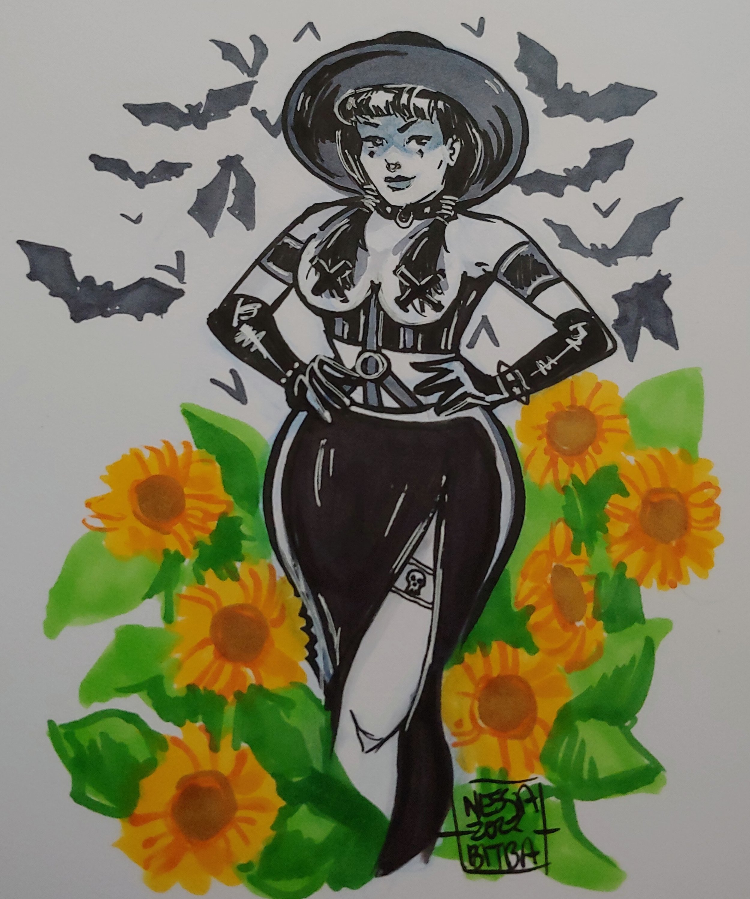 So I got right to it, I wanted to draw this character because she’s a thick thighed goth and I love thick thighed goths. I had the vision all laid out and worked at it for awhile.