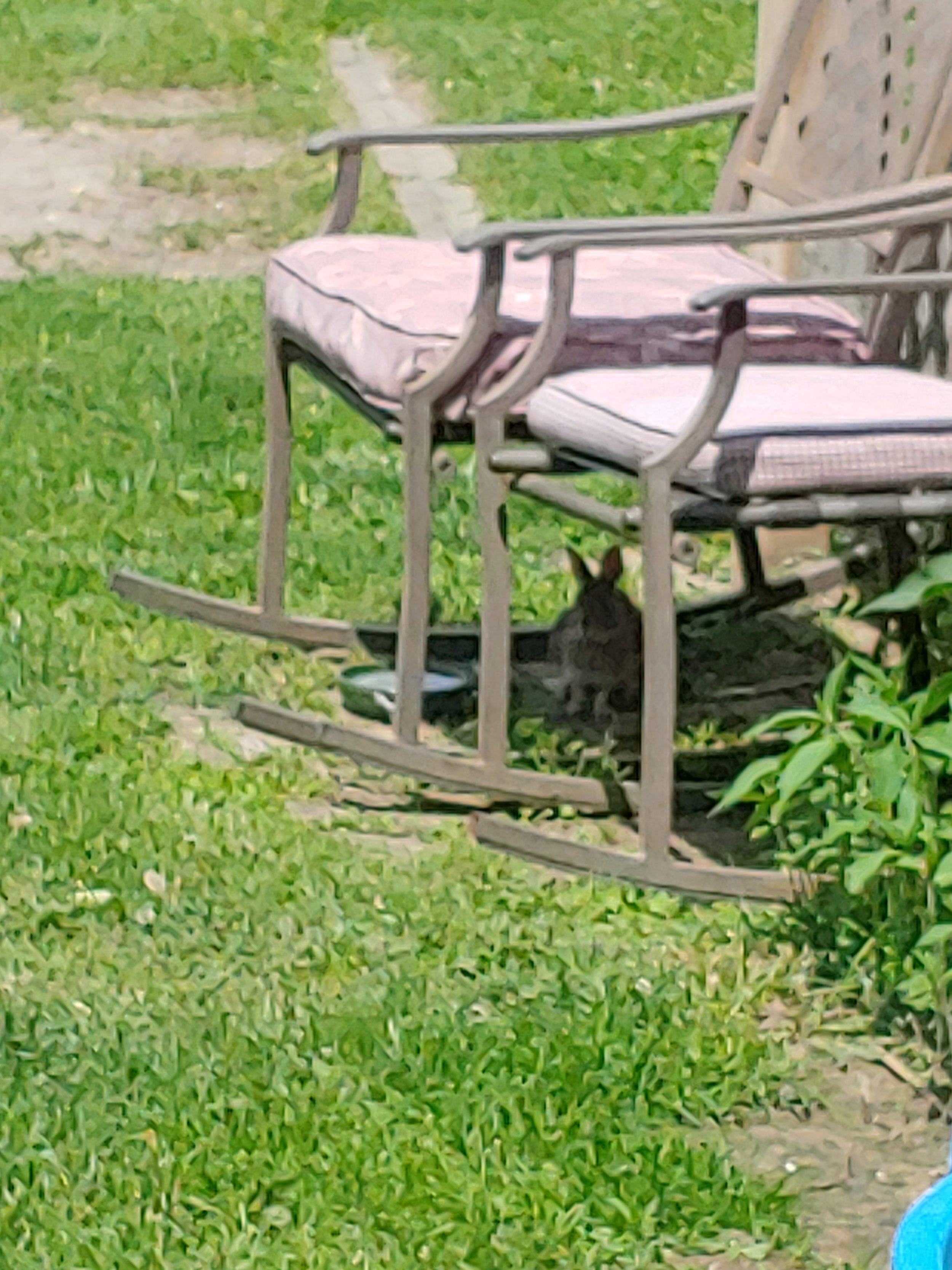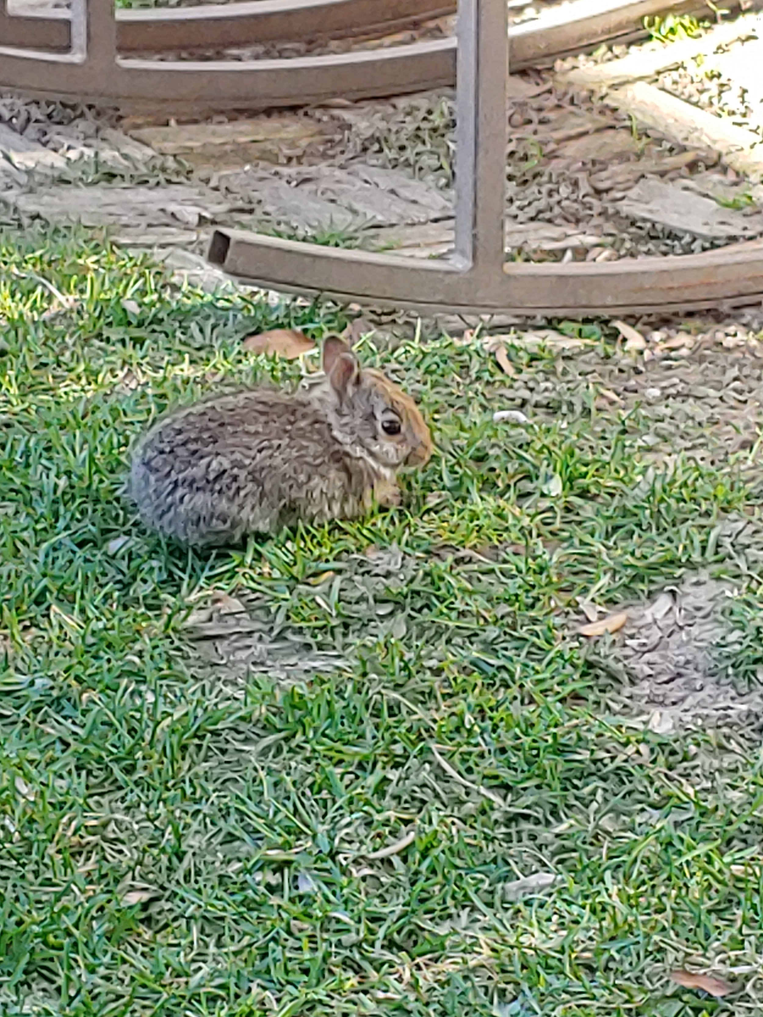 It would appear my rabbit planted her baby in my yard to claim as it’s new territory. I hardly see “mom” anymore, she doesn’t lay around my yard like she used to. She can be seen munching on clovers at the edge of the property line once a week in wee hours. But her offspring hangs out. This one doesn’t feel as comfortable to lay around exposed and in the sun like her mom did- but she hangs out nonetheless.