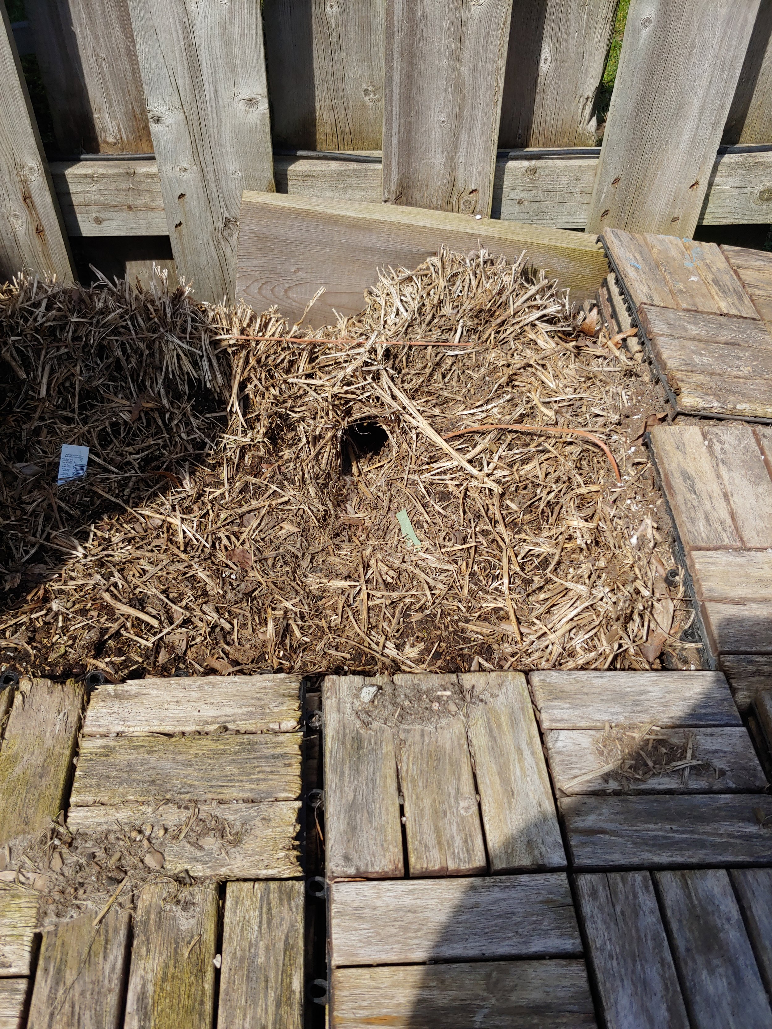 This spring I was surprised to discover a rabbit hole right in the hay bale.