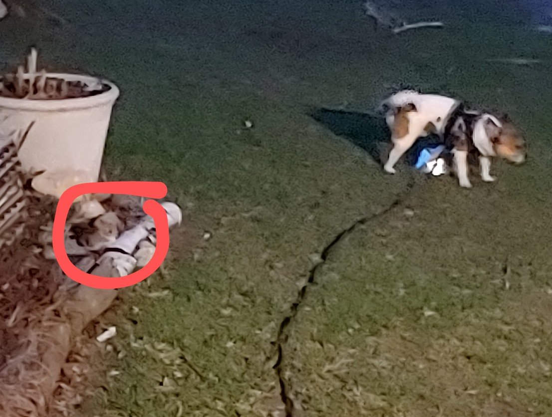 By the bowl of water I leave out for wildlife (her).