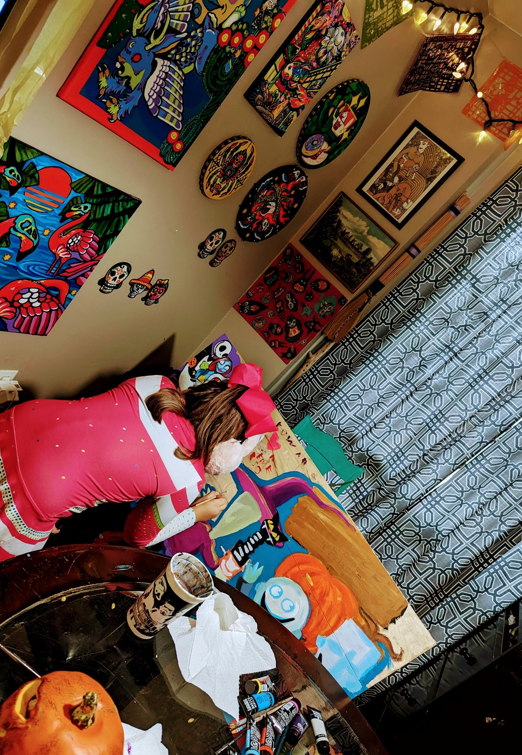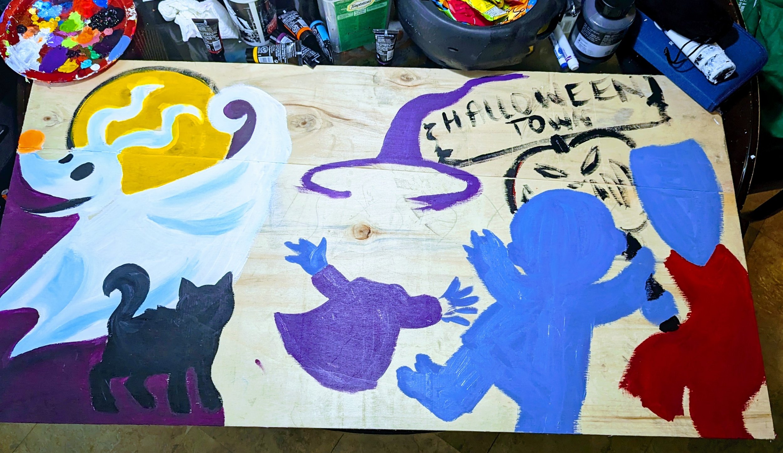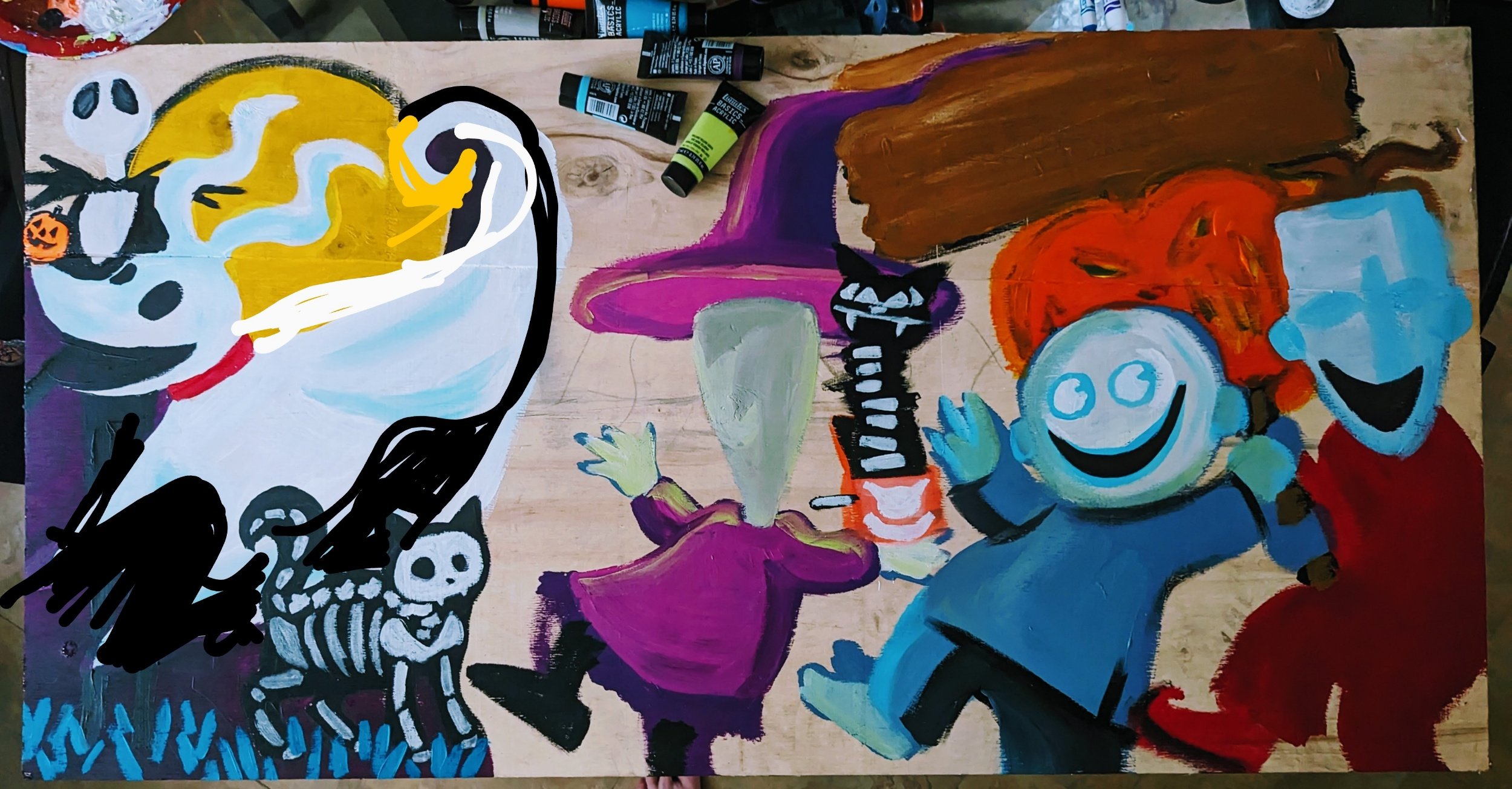 When my daughter saw Jack, she insisted I had to include Sally. See why I don’t pre pencil my paintings lol. I make too many changes along the way. It’s part of my process, I feel too stuck if I try to imagine the whole painting at once, and stick solely to the original idea. I *must* be able to improvise artistically along the way.