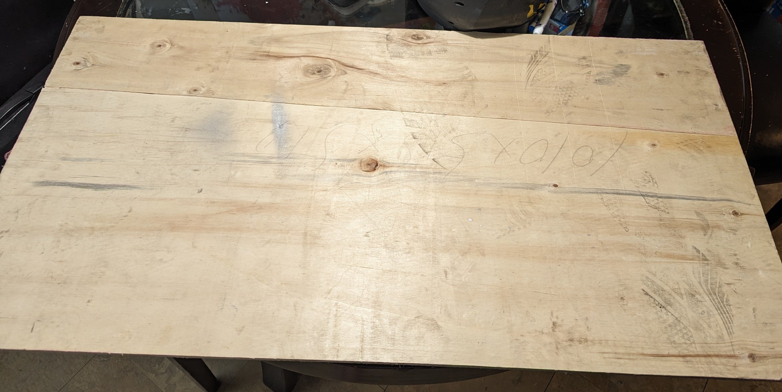 First step, acquire the wood. This wood was discarded, and thin enough to cut. It’ll do perfectly. It’s roughly 4 feet by 2 feet in size.