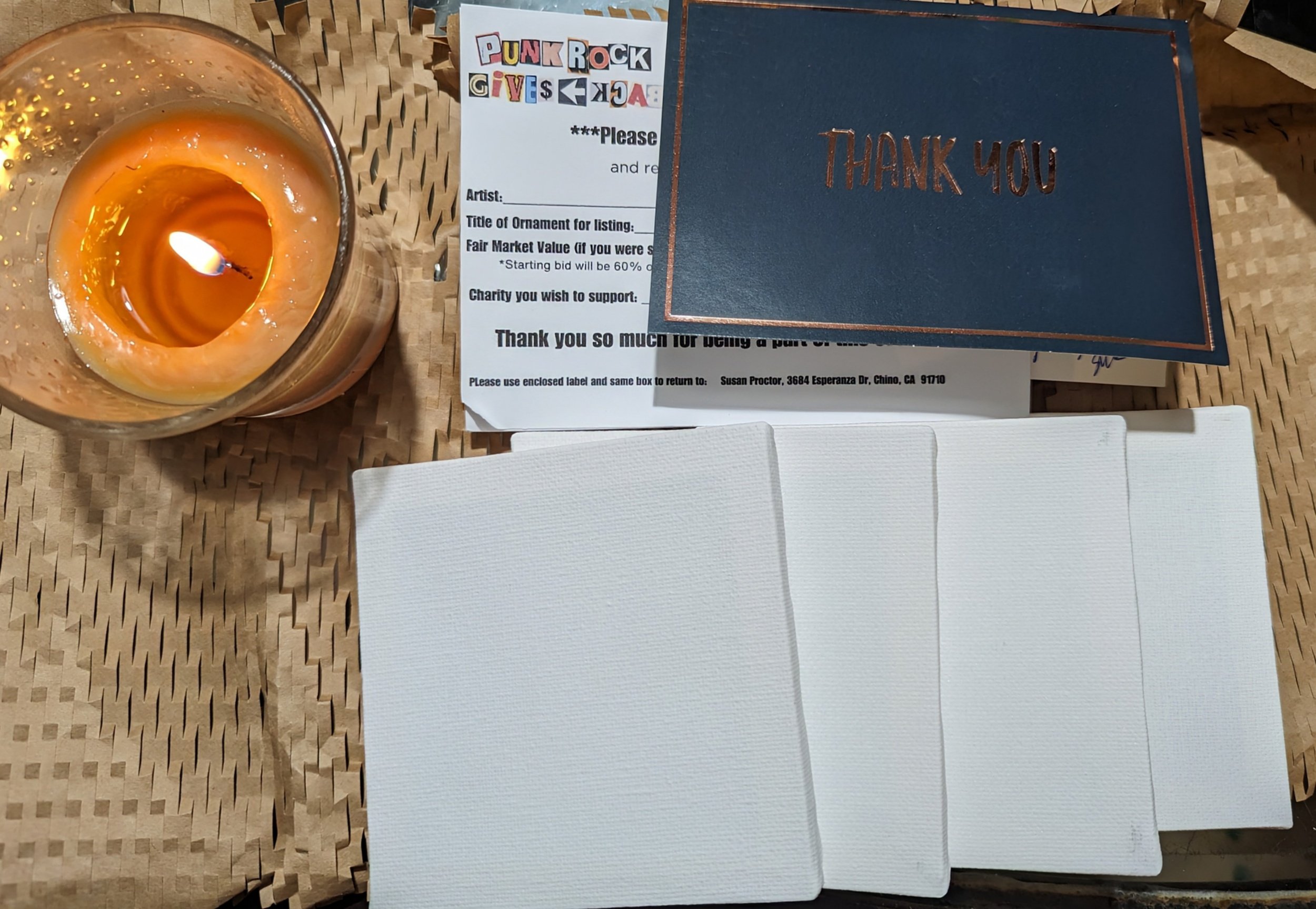 PRGB mailed me four canvasses to paint into ornaments. The ornaments would be auctioned off with the proceeds going to our chosen charity (ies).