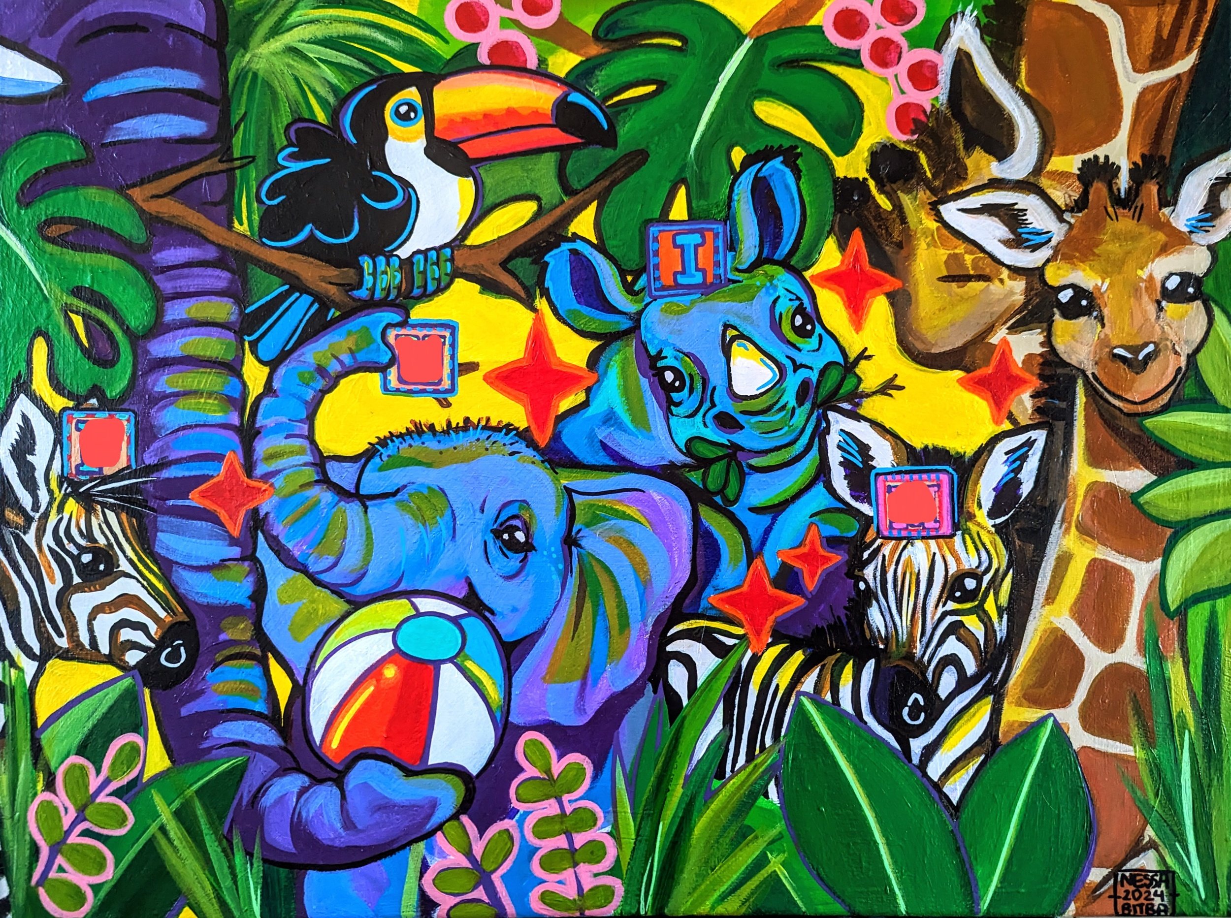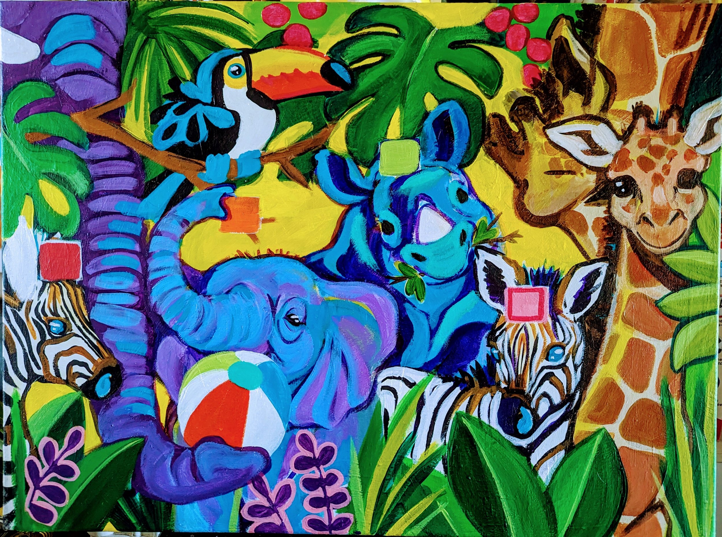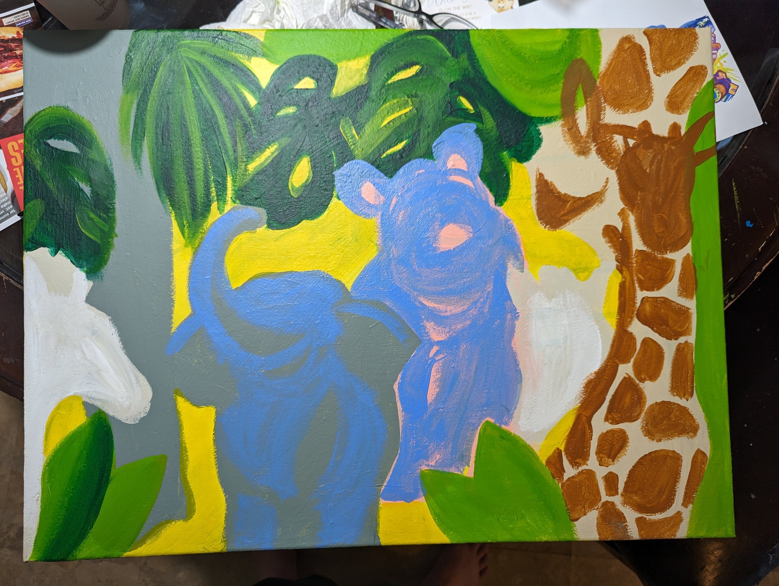 Changed up the position of one of the zebras. I wanted to show more body. Also felt it’s important to include some animal parents. It was something my kids noticed when they were babies, where were the parents in the books and paintings?
