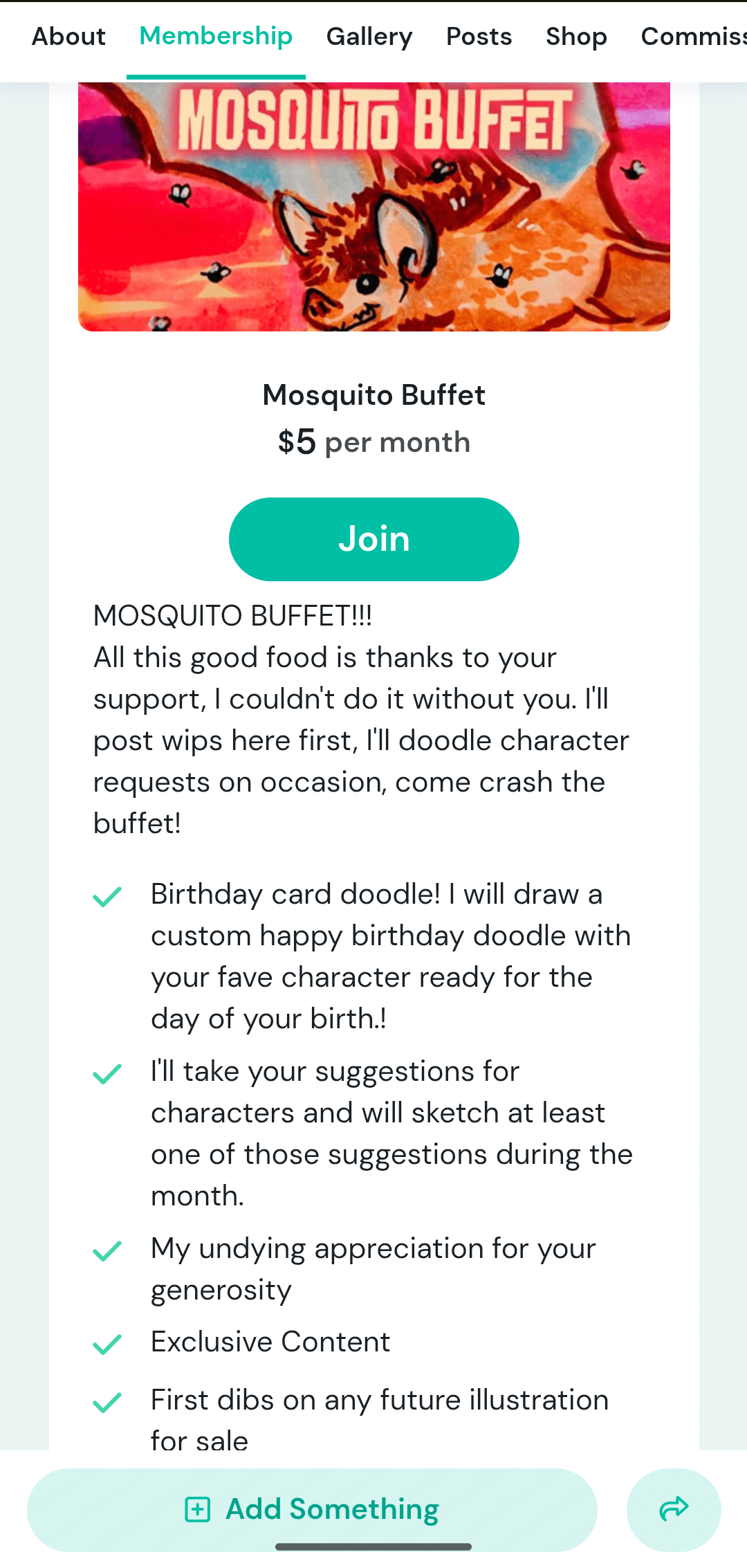 Mosquito Buffet option means you get access to everything I have posted, and you can have a custom birthday shoutout with a doodle on your day of birth. I also take sketch requests for warmups, I will draw at least one of your sketch requests during the month. I post wips often, and as soon as I can offer stickers again, you will be the first to know.