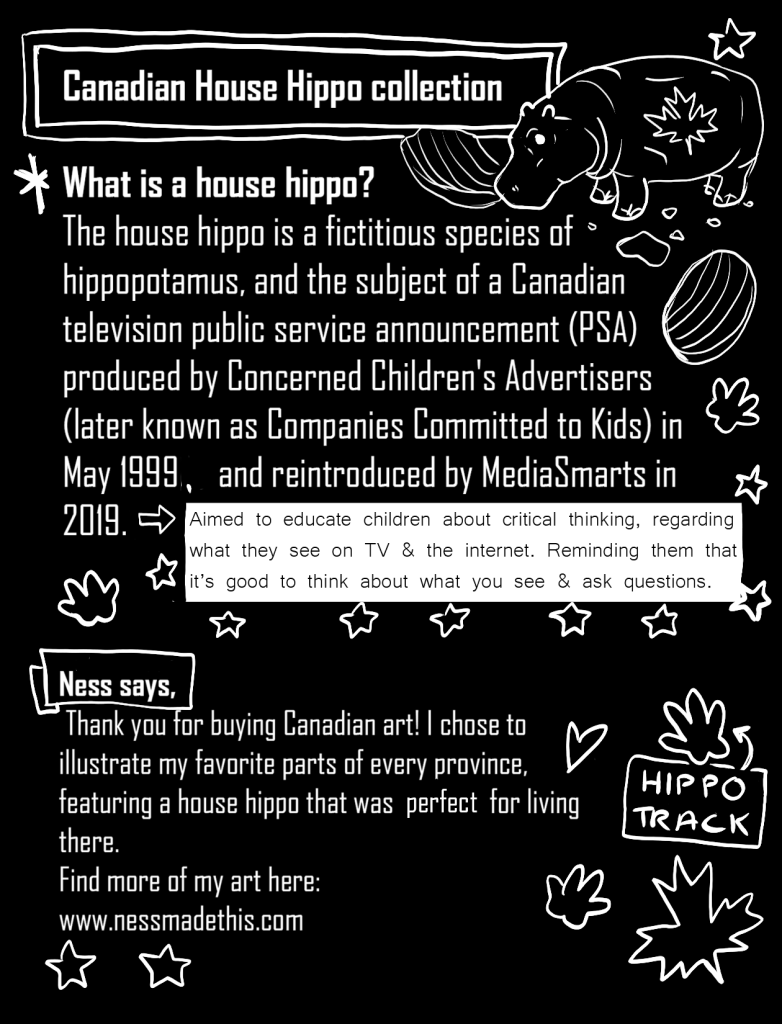 This is the house hippo explanation for those who don’t know. Also featured as the backing card for my Canadian vinyl sticker collection.