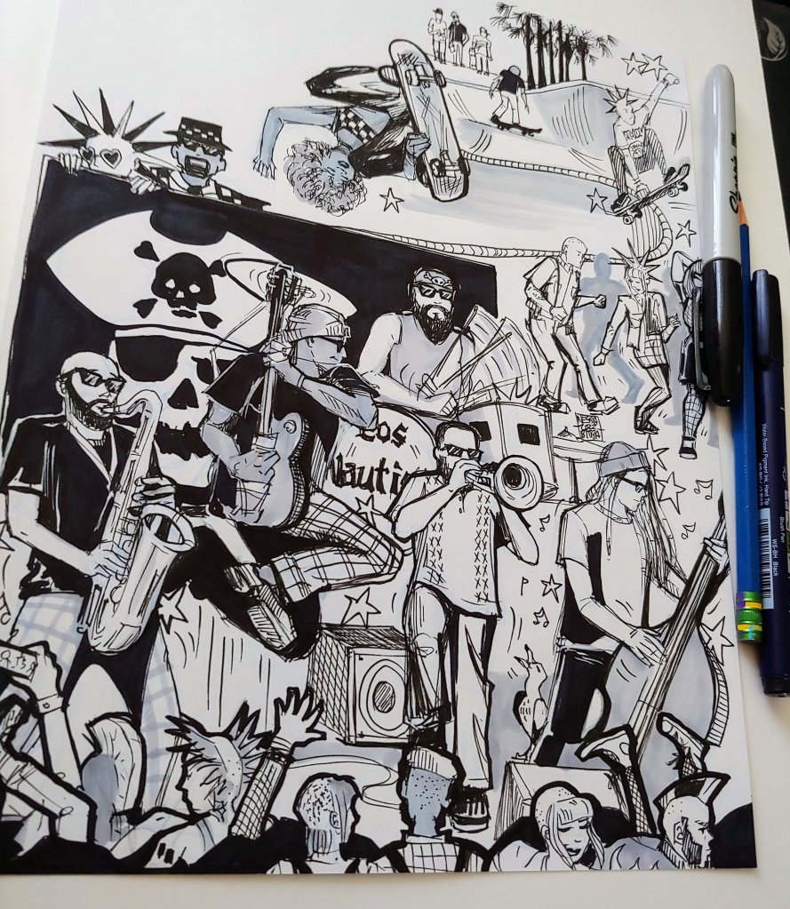 illustrated an official tour poster for The Cybertronic SpreeIllustrated a gig poster for the Cybertronic spreePRGB charity auction For the Punk Rock Gives back charityKids art campSkater gear illustrated a concert gig poster for The Los NauticalsPainted an heirloom